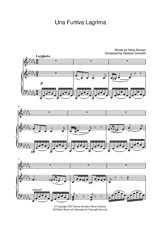 Digital Sheet Music for Una Furtiva Lagrima (A Furtive Tear) by Gaetano Donizetti, Luciano Pavarotti, Felice Romani scored for Piano/Vocal/Chords; id:401858