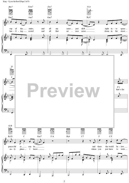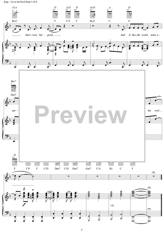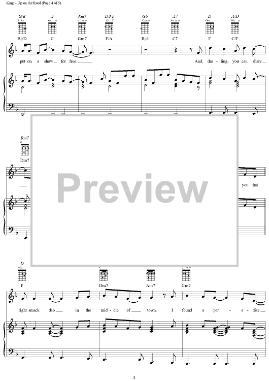 Digital Sheet Music for Up on the Roof by James Taylor, Carole King, Gerry Goffin scored for Piano/Vocal/Chords; id:286039