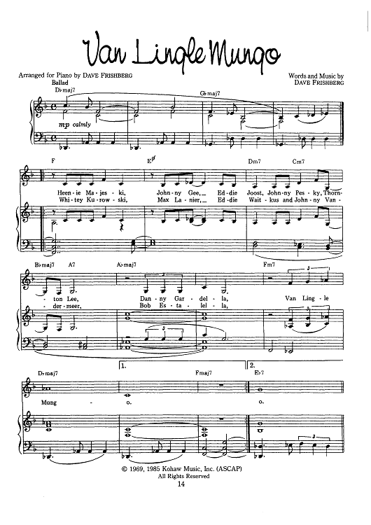Digital Sheet Music for Van Lingle Mungo by Dave Frishberg scored for Piano/Vocal/Chords; id:429857