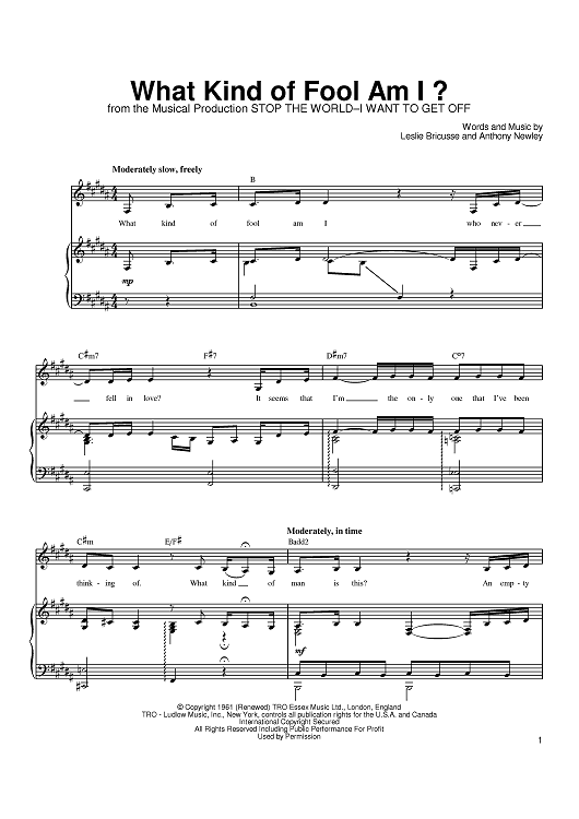 Digital Sheet Music for What Kind Of Fool Am I? by Leslie Bricusse, Linda Eder, Robert Goulet, Jr. Sammy Davis, Anthony Newley scored for Piano/Vocal/Chords; id:374706