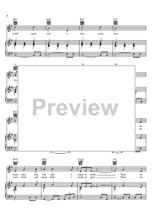 "What The World Needs Now Is Love" Sheet Music by Burt Bacharach
