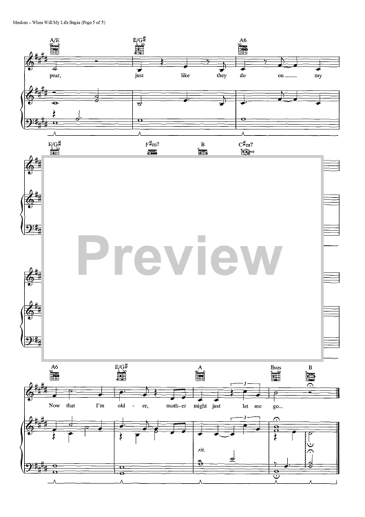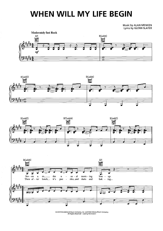 "When Will My Life Begin" Sheet Music by Mandy Moore