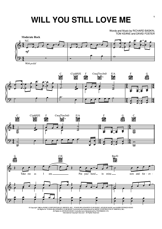 Digital Sheet Music for Will You Still Love Me by Chicago, Tom Keane, Richard Baskin, David Foster scored for Piano/Vocal/Chords; id:383819