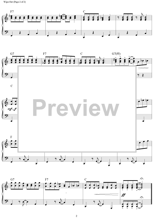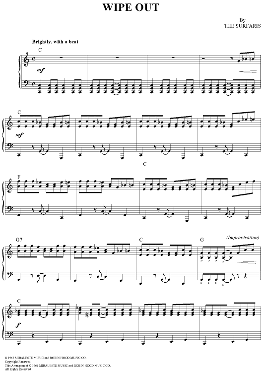 Digital Sheet Music for Wipe Out by Surfaris scored for Piano Solo; id:109912