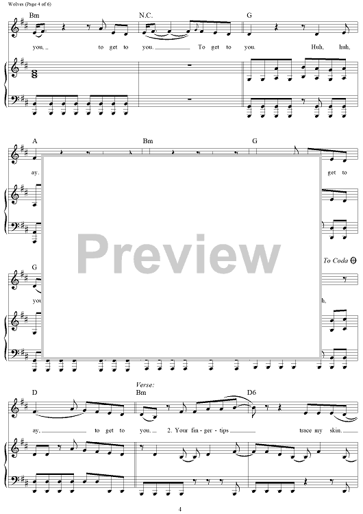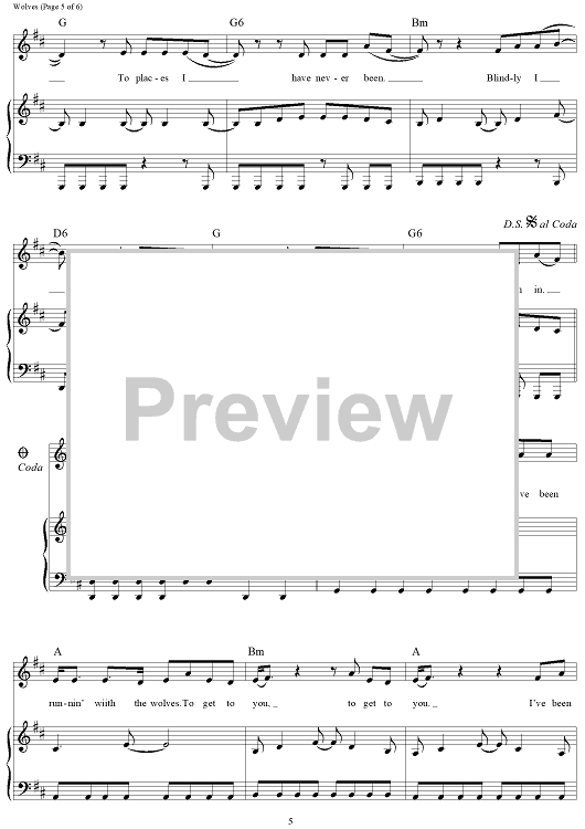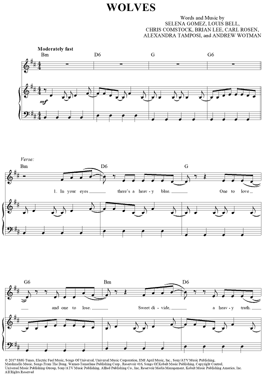 Digital Sheet Music for Wolves by Selena Gomez, Alexandra Tamposi, Brian Lee, Andrew Wotman, Louis Bell, Carl Rosen, Chris Comstock scored for Piano/Vocal/Chords; id:465782