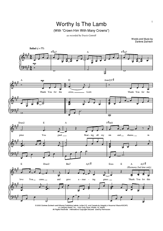 "Worthy Is The Lamb" Sheet Music by Darlene Zschech