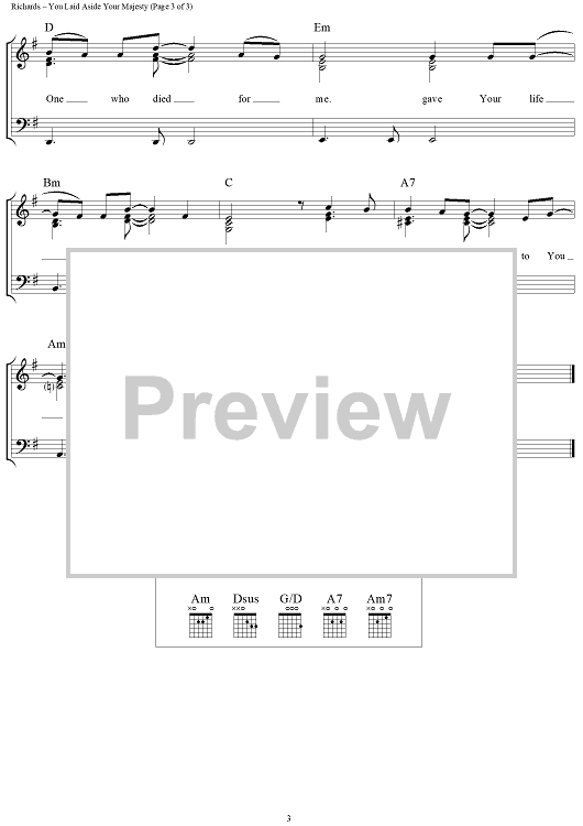 Digital Sheet Music for You Laid Aside Your Majesty by Noel Richards scored for Piano/Vocal/Chords; id:283109