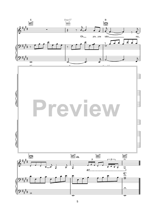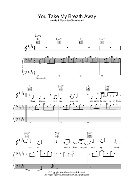 Digital Sheet Music for You Take My Breath Away by Eva Cassidy scored for Piano/Vocal/Chords; id:378198