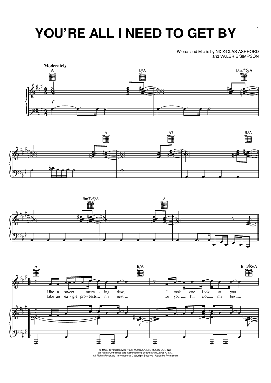 Digital Sheet Music for You're All I Need To Get By by Marvin Gaye, Michael McDonald, Nickolas Ashford, Valerie Simpson scored for Piano/Vocal/Chords; id:394876