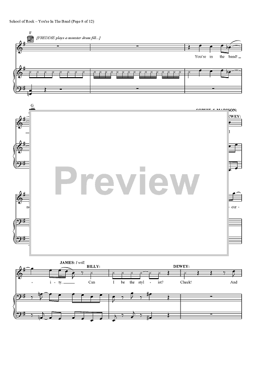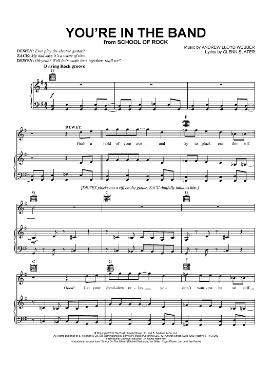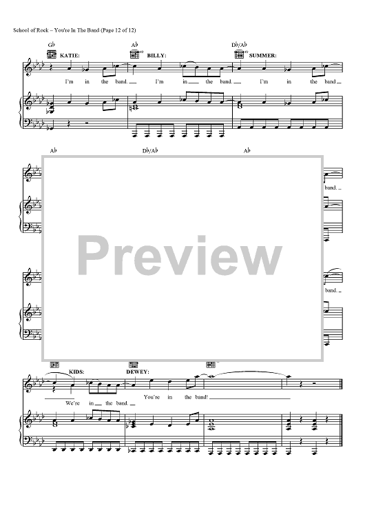 Digital Sheet Music for You're In The Band by Andrew Lloyd Webber, Glenn Slater scored for Piano/Vocal/Chords; id:457966