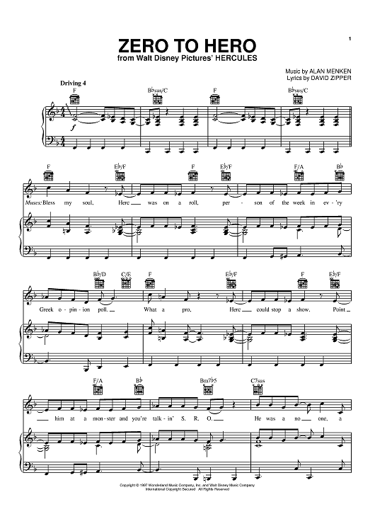 Digital Sheet Music for Zero To Hero by David Zippel, Alan Menken, Lillias White scored for Piano/Vocal/Chords; id:393929