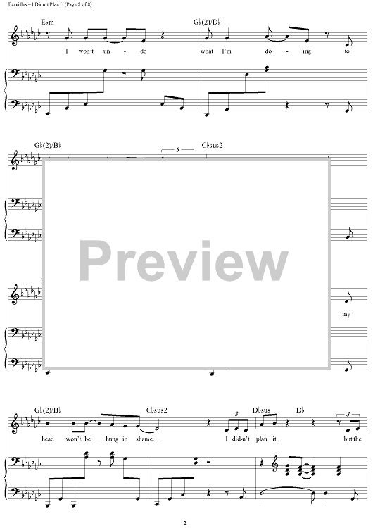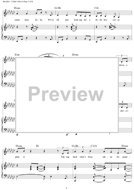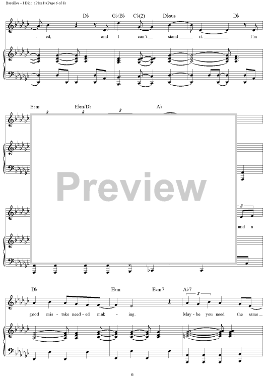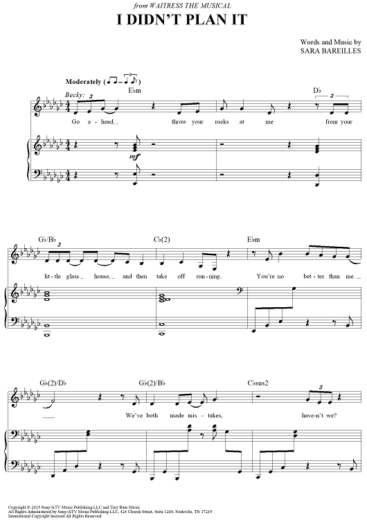 Digital Sheet Music for I Didn't Plan It by Sara Bareilles scored for Piano/Vocal/Chords; id:457611