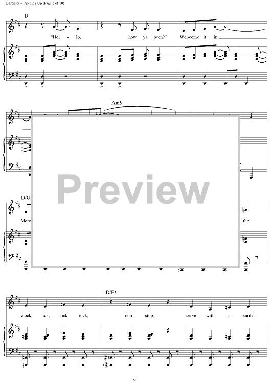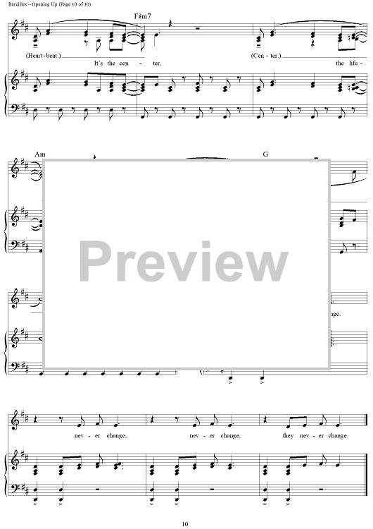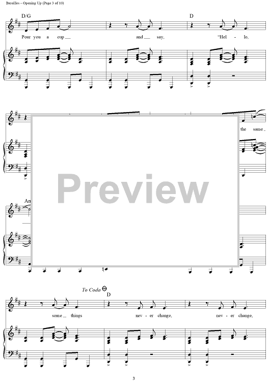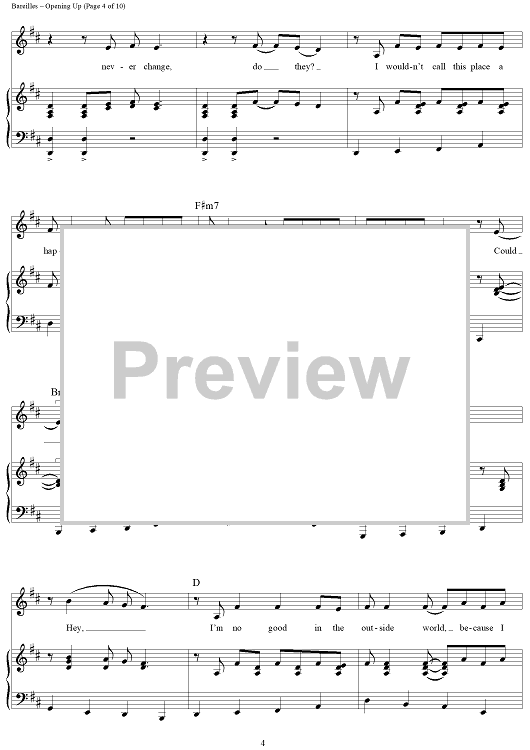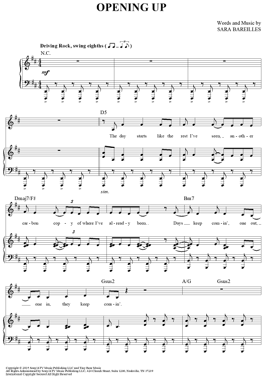 Digital Sheet Music for Opening Up by Sara Bareilles scored for Piano/Vocal/Chords; id:457613