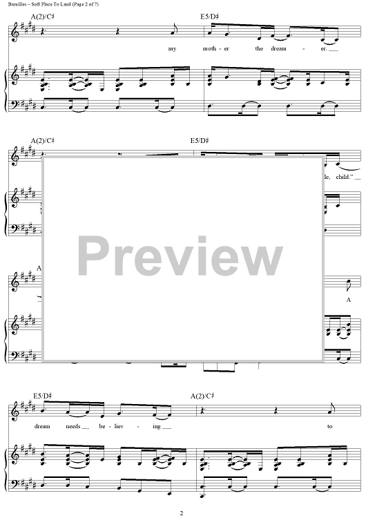 Digital Sheet Music for Soft Place To Land by Sara Bareilles scored for Piano/Vocal/Chords; id:457614