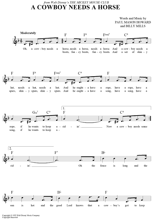 Digital Sheet Music for A Cowboy Needs A House by Paul Mason Howard, B?illy Mills scored for Lead Sheet; id:440116