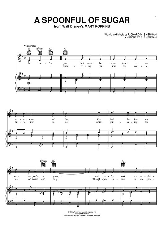 Digital Sheet Music for A Spoonful Of Sugar by Richard M. Sherman, Robert B. Sherman, Julie Andrews scored for Piano/Vocal/Chords; id:398131