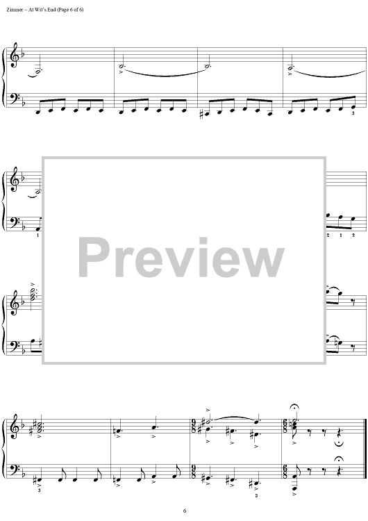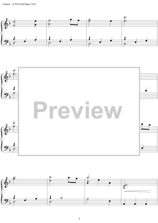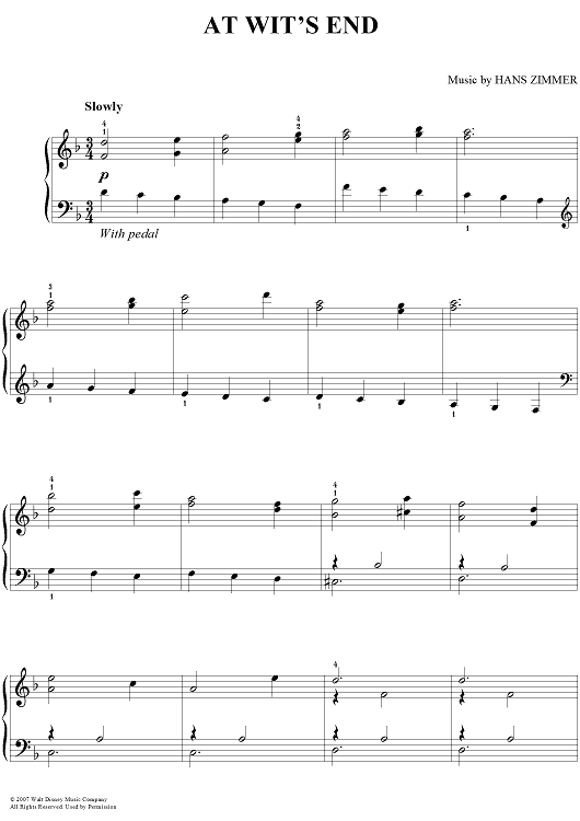 Digital Sheet Music for At Wit's End by Hans Zimmer scored for Easy Piano; id:399363
