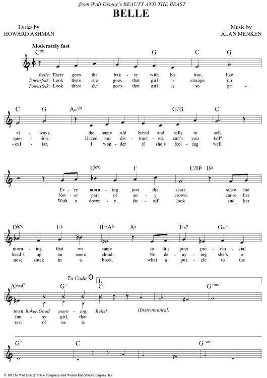 Digital Sheet Music for Belle by Alan Menken, Howard Ashman scored for Lead Sheet; id:439633