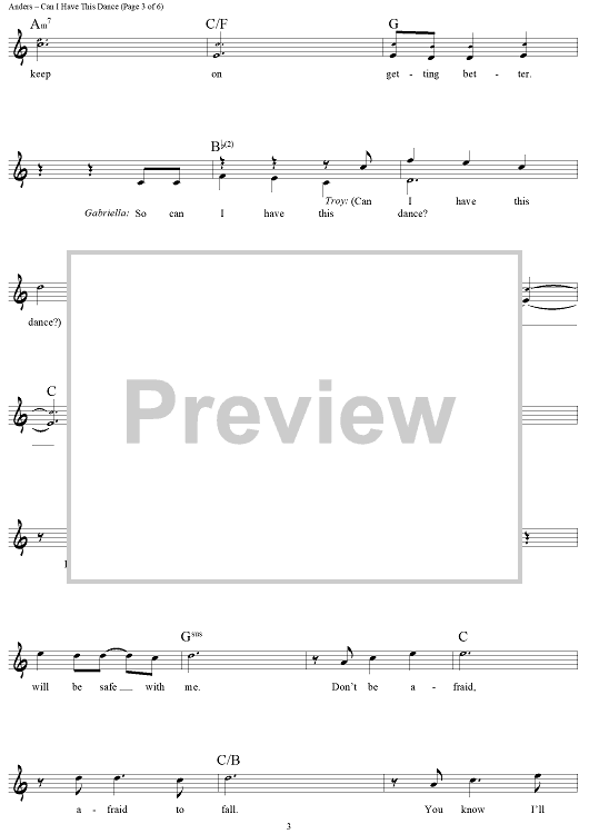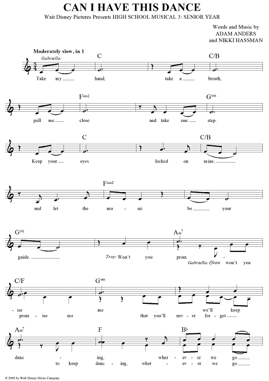 Digital Sheet Music for Can I Have This Dance by Nikki Hassman, Adam Anders scored for Lead Sheet; id:439639