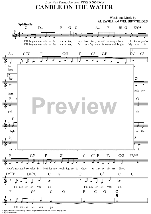 Digital Sheet Music for Candle On The Water by Al Kasha, Joel Hirschhorn scored for Lead Sheet; id:440121