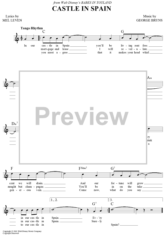 Digital Sheet Music for Castle In Spain by George Bruns, Mel Leven scored for Lead Sheet; id:440123