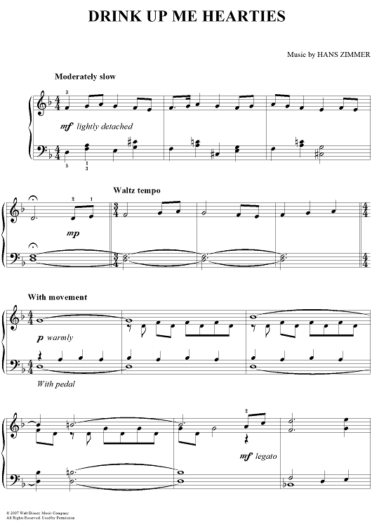 "Drink Up Me Hearties" Sheet Music by Hans Zimmer