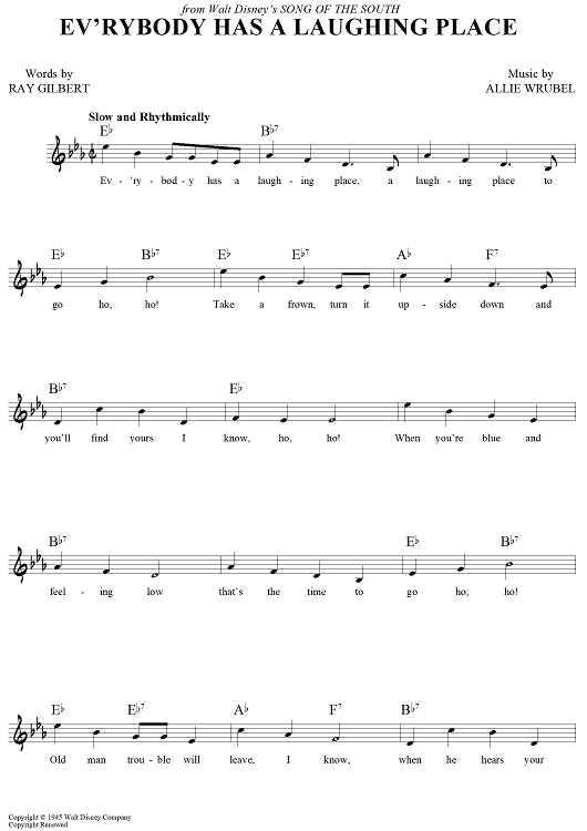 Digital Sheet Music for Ev'rybody Has A Laughing Place by Ray Gilbert, Allie Wrubel scored for Lead Sheet; id:440791