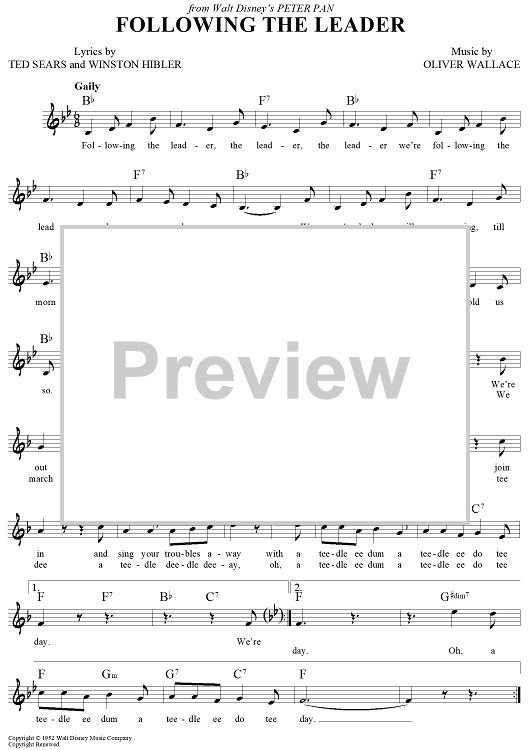 Digital Sheet Music for Following The Leader by Winston Hibler, Ted Sears, Oliver Wallace scored for Lead Sheet; id:440794