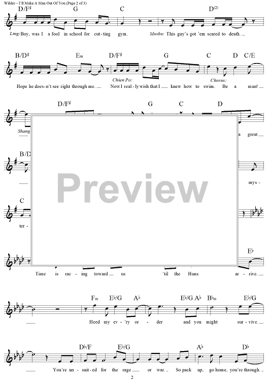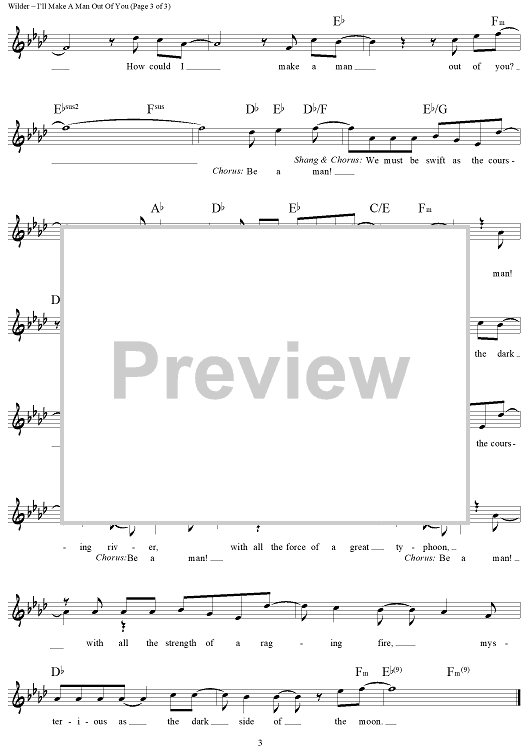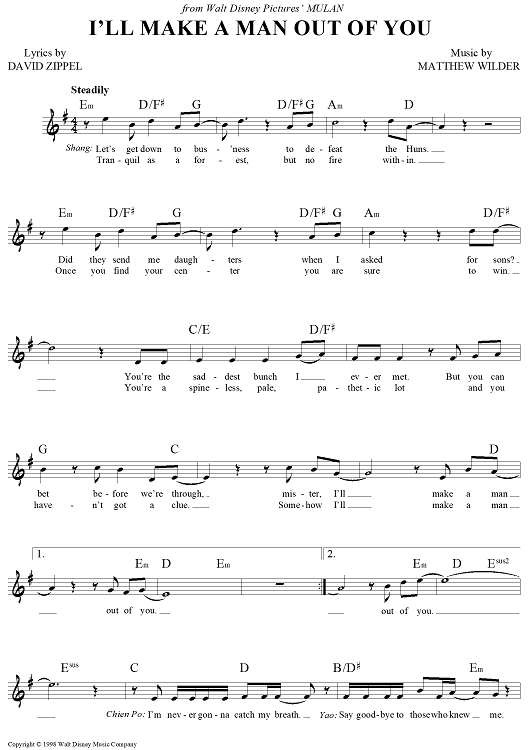 Digital Sheet Music for I'll Make A Man Out Of You by David Zippel, Matthew Wilder scored for Lead Sheet; id:441848