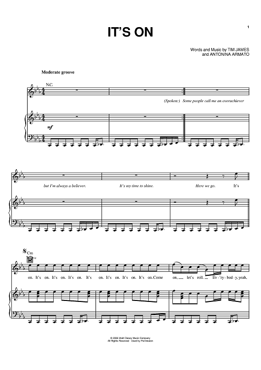 Digital Sheet Music for It's On by Antonina Armato, Tim James, N.L.T. scored for Piano/Vocal/Chords; id:397835