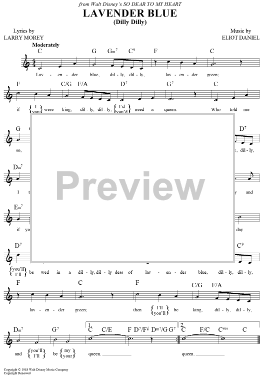 Digital Sheet Music for Lavender Blue (Dilly Dilly) by Larry Morey, Eliot Daniel scored for Lead Sheet; id:441811