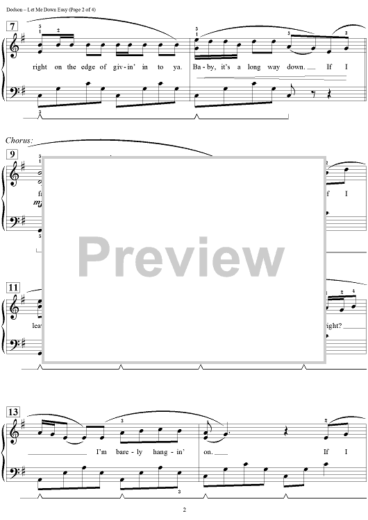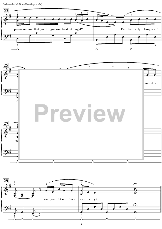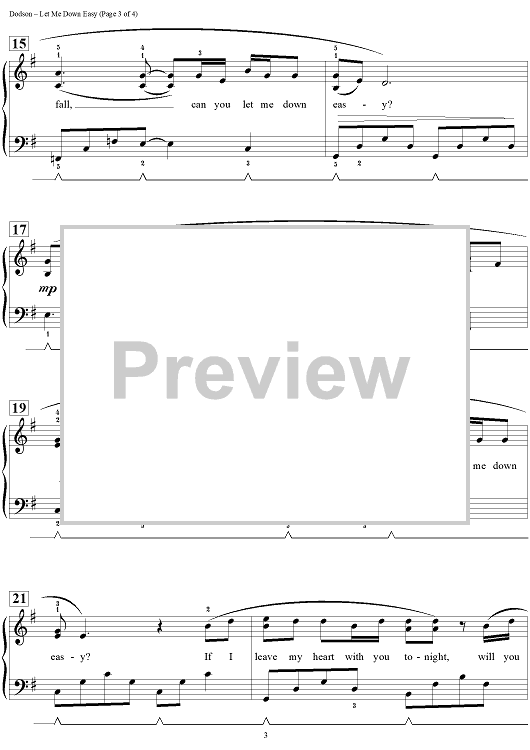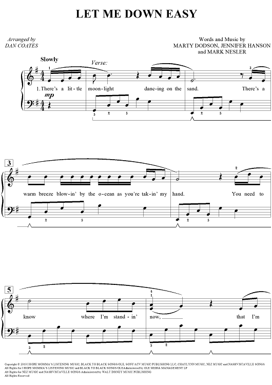 Digital Sheet Music for Let Me Down Easy by Dan Coates, Mark Nesler, Jennifer Hanson, Marty Dodson scored for Piano; id:458339