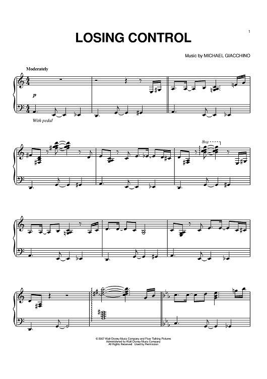 Digital Sheet Music for Losing Control by Michael Giacchino scored for Piano; id:398409