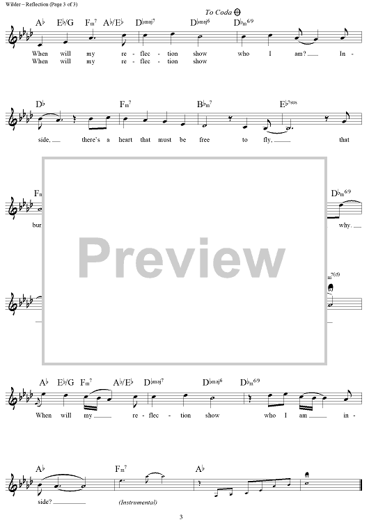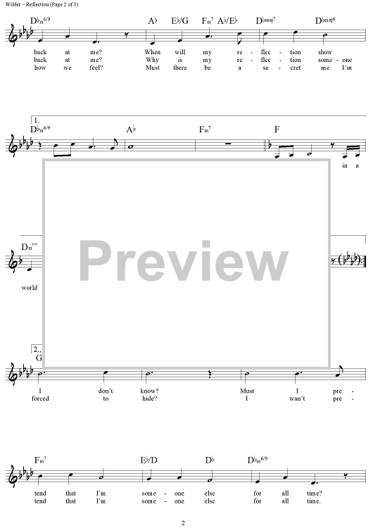 Digital Sheet Music for Reflection by David Zippel, Matthew Wilder scored for Lead Sheet; id:444197
