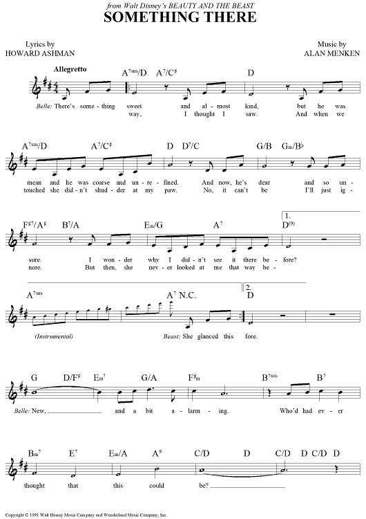 Digital Sheet Music for Something There by Alan Menken, Howard Ashman scored for Lead Sheet; id:444733