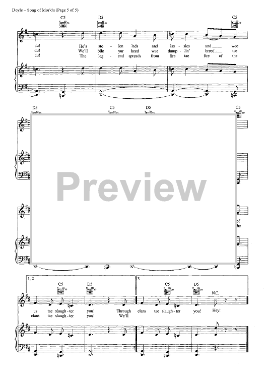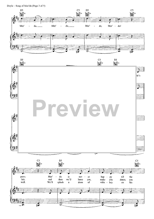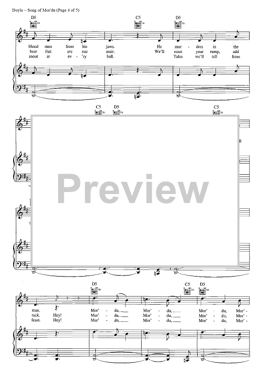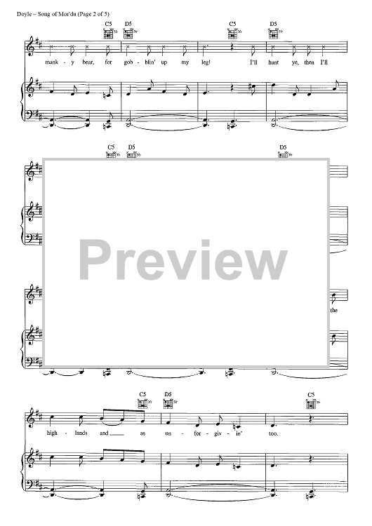 Digital Sheet Music for Song Of Mor'du by Patrick Doyle, Patrick Neil Doyle, Steve Purcell scored for Piano/Vocal/Chords; id:439494
