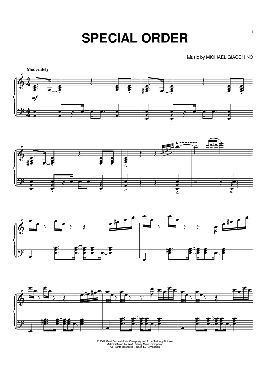 Digital Sheet Music for Special Order by Michael Giacchino scored for Piano; id:398412