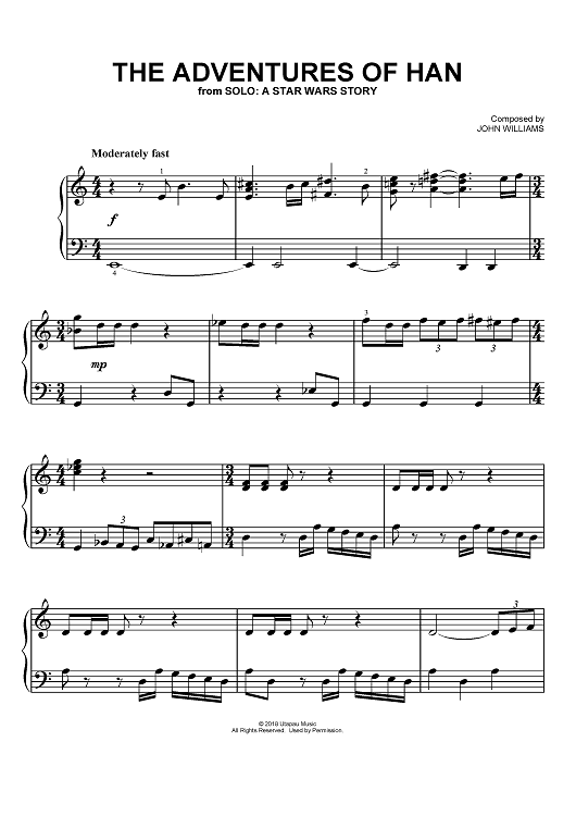 Digital Sheet Music for The Adventures of Han - from Solo: A Star Wars Story by John Williams scored for Easy Piano; id:466469