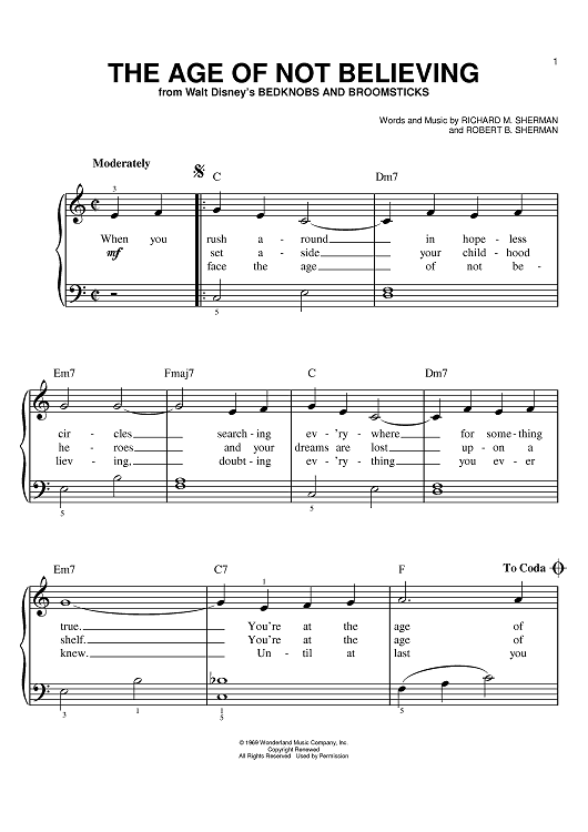 Digital Sheet Music for The Age Of Not Believing by Richard M. Sherman, Robert B. Sherman, Angela Lansbury scored for Easy Piano; id:393728