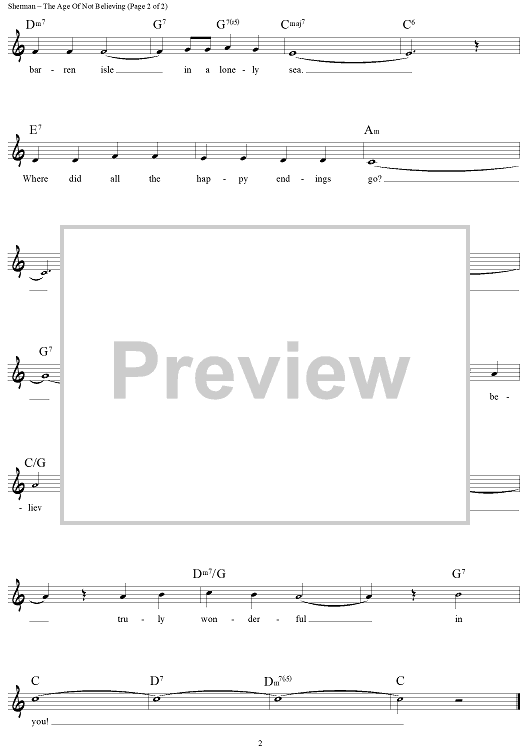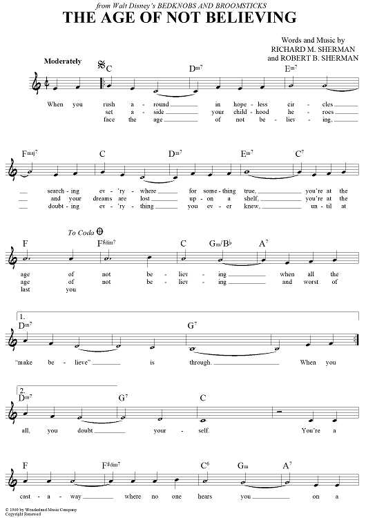 Digital Sheet Music for The Age Of Not Believing by Richard M. Sherman, Robert B. Sherman scored for Lead Sheet; id:439640