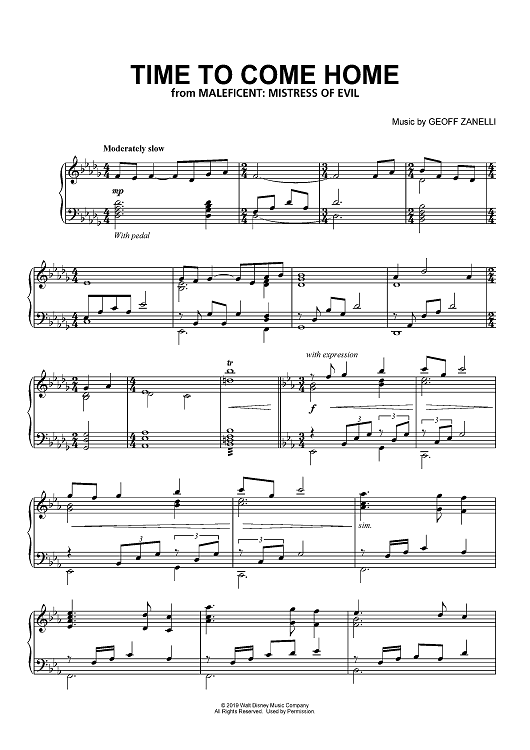 Digital Sheet Music for Time To Come Home - from Maleficent: Mistress of Evil by Geoff Zanelli scored for Piano Solo; id:467966