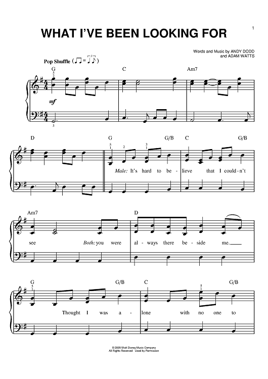 Digital Sheet Music for What I've Been Looking For by Adam Watts, Andy Dodd scored for Easy Piano; id:389515