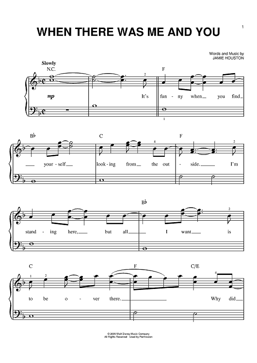 Digital Sheet Music for When There Was Me And You by Jamie Houston scored for Easy Piano; id:389516
