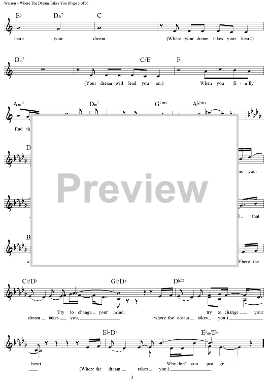 Digital Sheet Music for Where The Dream Takes You by Diane Warren, James Newton Howard, Mya scored for Lead Sheet; id:448611