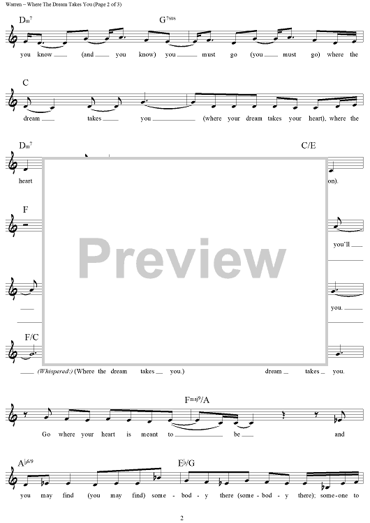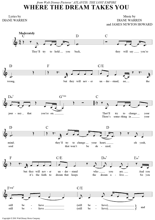 "Where The Dream Takes You" Sheet Music by Diane Warren