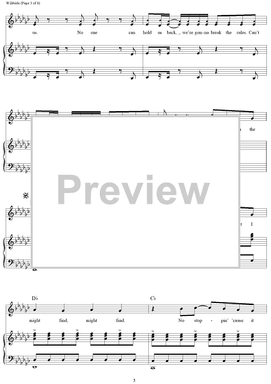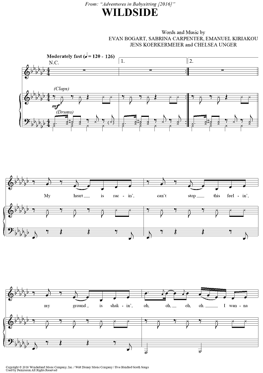 Digital Sheet Music for Wildside by Emanuel Kiriakou, Evan Bogart, Sabrina Carpenter, Jens Koerkermeier, Chelsea Unger scored for Piano/Vocal/Chords; id:461300