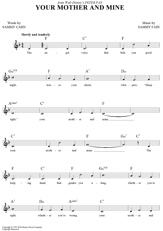 Digital Sheet Music for Your Mother and Mine by Sammy Cahn, Sammy Fain scored for Lead Sheet; id:448624