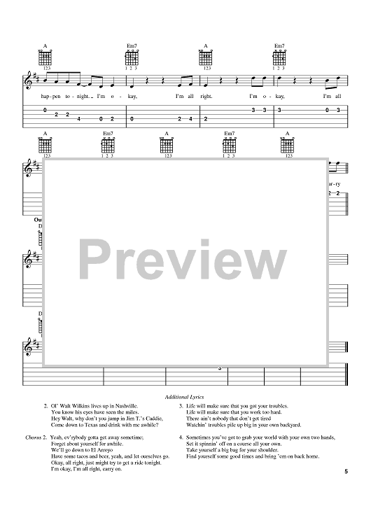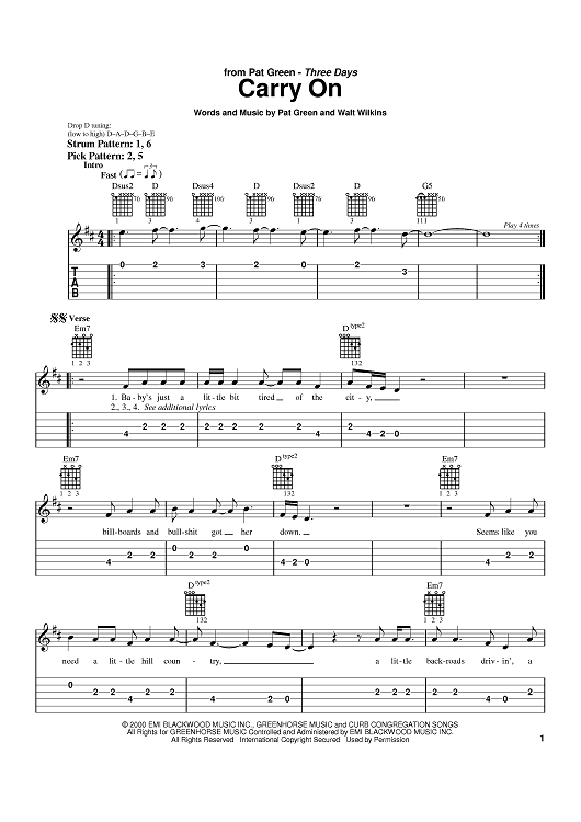 Digital Sheet Music for Carry On by Pat Green, Walt Wilkins scored for Easy Guitar Tab; id:372794