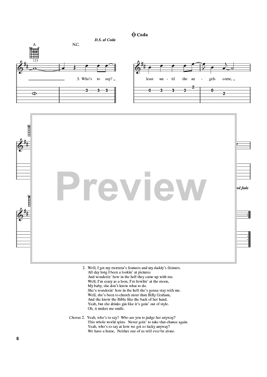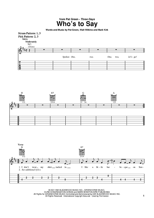 Digital Sheet Music for Who's To Say by Pat Green, Mark Kirk, Walt Wilkins scored for Easy Guitar Tab; id:372812