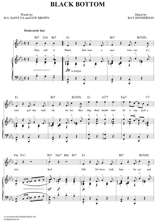 Digital Sheet Music for Black Bottom by Ray Henderson, Lew Brown, Buddy DeSylva scored for Piano/Vocal/Chords; id:297244